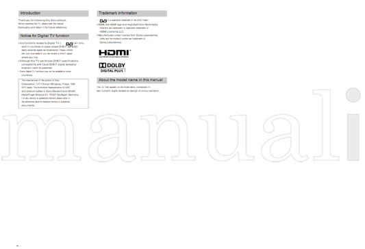 Discover Sony TV, audio, and video electronics service and operating manuals, available as downloadable PDFs and binded copies. Our comprehensive guides provide setup instructions, troubleshooting tips, and maintenance advice to ensure your Sony devices perform at their best. Browse our collection today to find the perfect manual for your model.