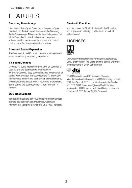 Samsung HWF550 HWF551 Sound Bar System Operating Manual