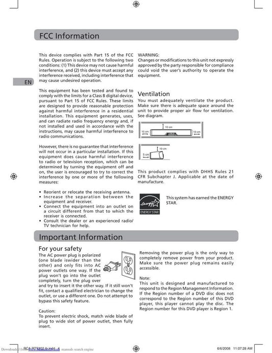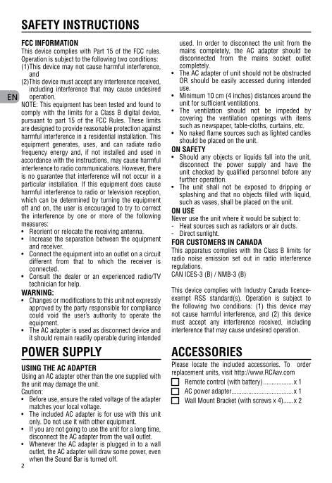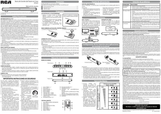 RCA RTS7110B RTS7630B Sound Bar System Operating Manual