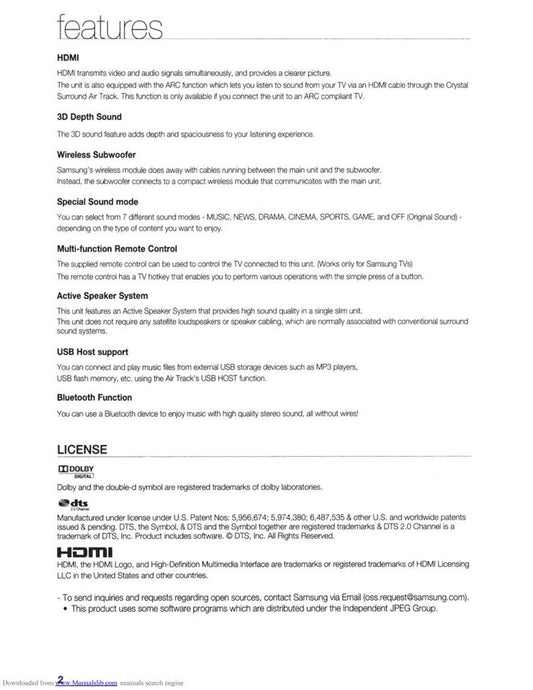 Samsung HW-M360/ZA Sound Bar System Operating Manual