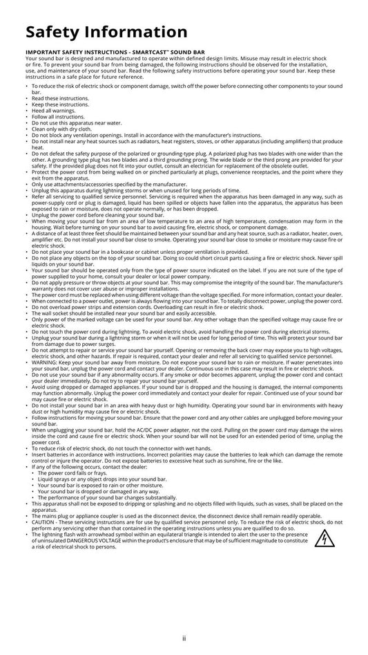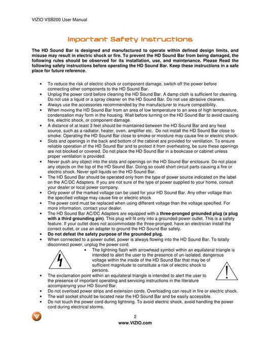 Vizio B3820C6 S2121wD0 S2121wDo Sound Bar System Operating Manual