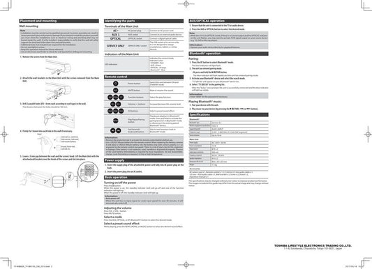 Toshiba TYSBX130 Sound Bar System Operating Manual