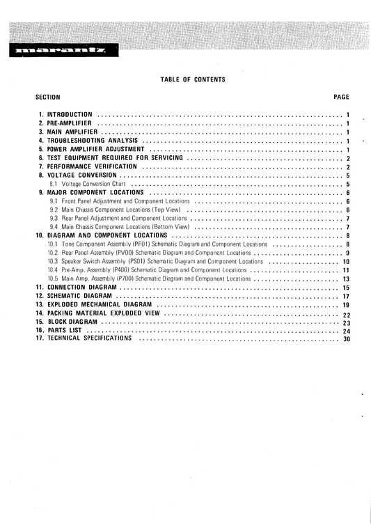 Marantz Model 1070 Console Stereo Amplifier Service Manual (Pages: 24)