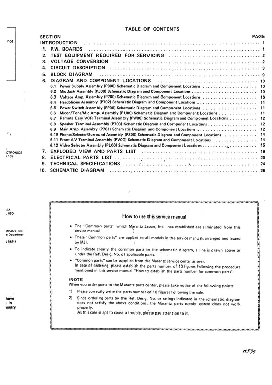 Marantz Model 1060 Console Stereo Amplifier Service Manual (Pages: 22)