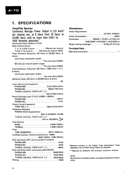 Pioneer A-70 Stereo Amplifier Service Manual (Pages: 26)