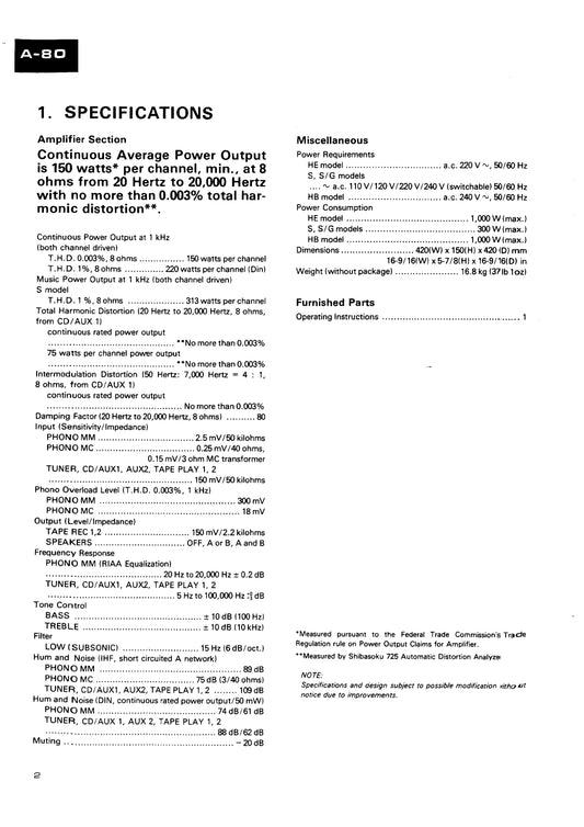 Pioneer A-80 Stereo Amplifier Service Manual (Pages: 31)