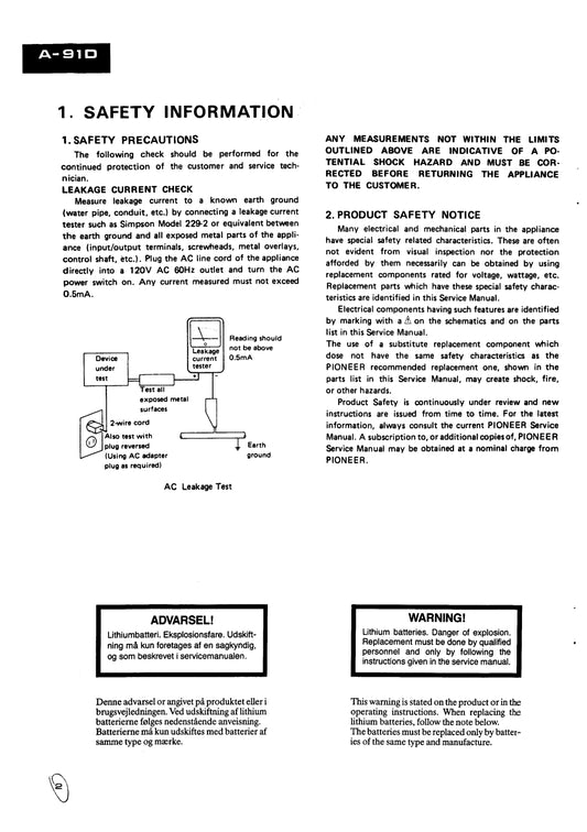 Pioneer A-91D Stereo Amplifier Service Manual (Pages: 39)