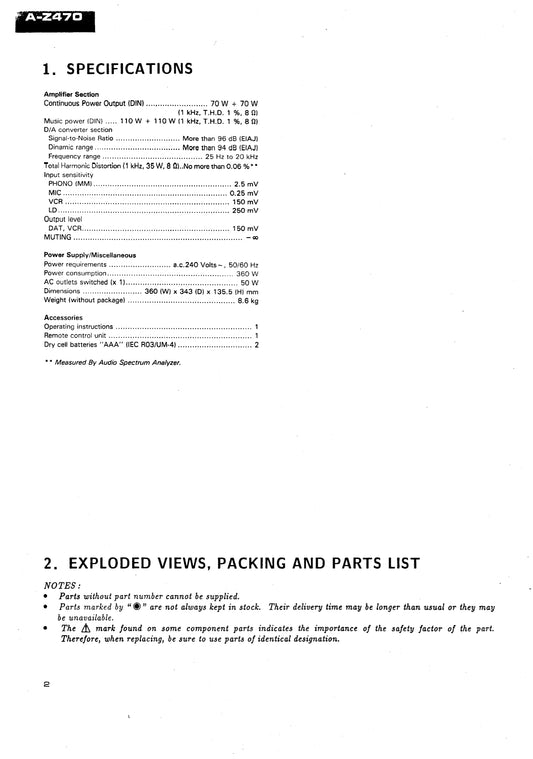 Pioneer A-Z470 Stereo Amplifier Service Manual (Pages: 42)