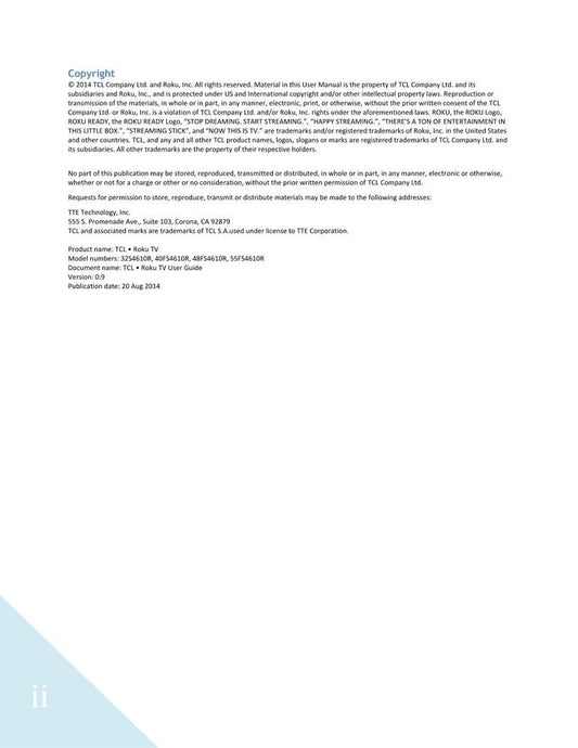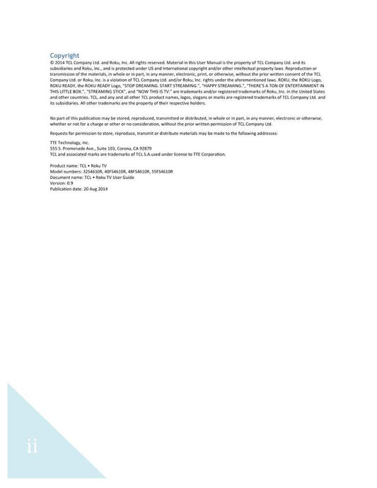 Discover TCL TV and Roku TV service and operating manuals, available as downloadable PDFs and binded copies. Our comprehensive guides provide setup instructions, troubleshooting tips, and maintenance advice to ensure your TCL devices perform at their best. Browse our collection today to find the perfect manual for your model.