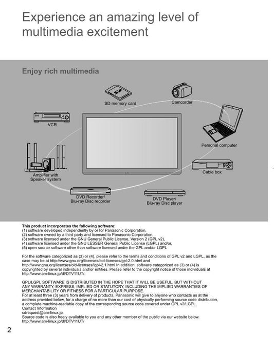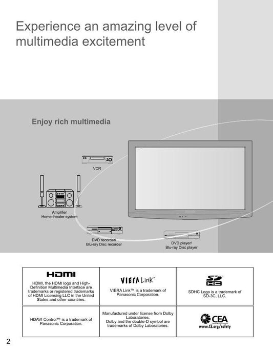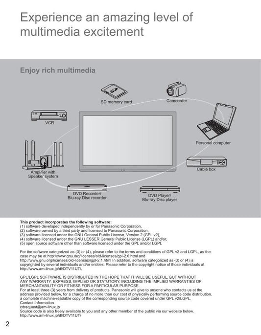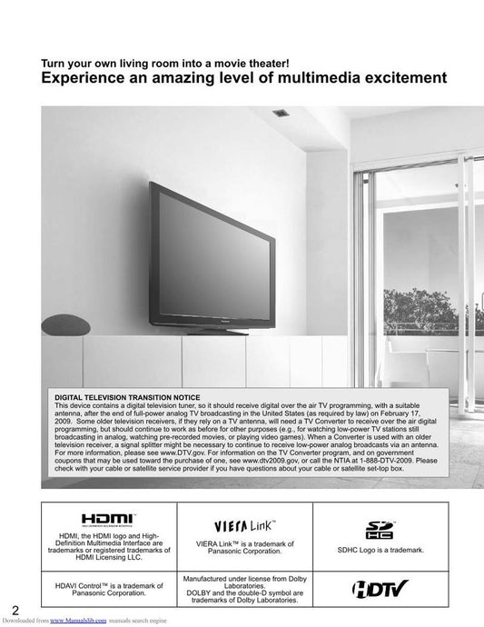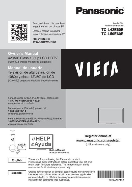 Panasonic TCL42E60 TCL50E60 TV Operating Manual