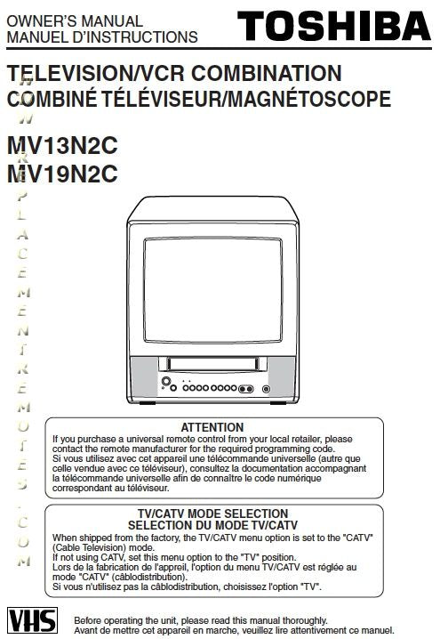 Toshiba MV13N2C MV19N2 MV19N2C TV/VCR Combo Operating Manual