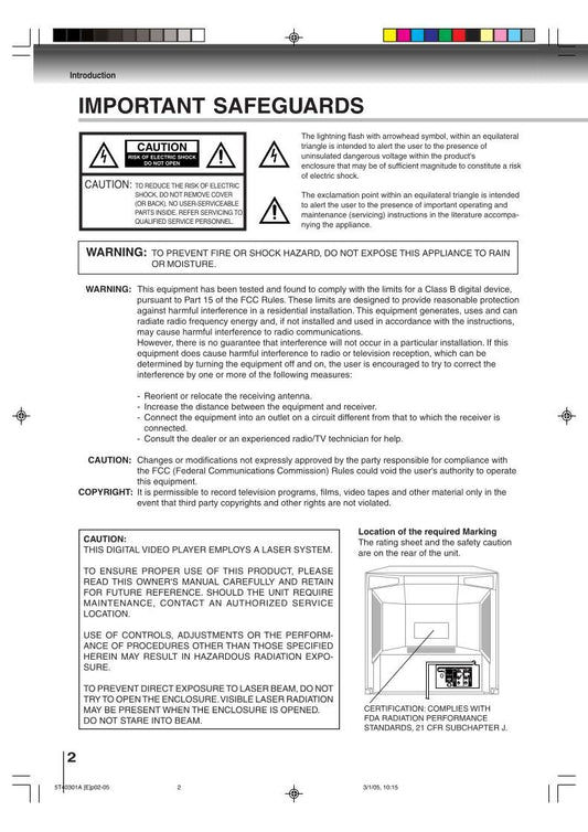 Toshiba MT500 TDPMT500 Consumer Electronics Operating Manual