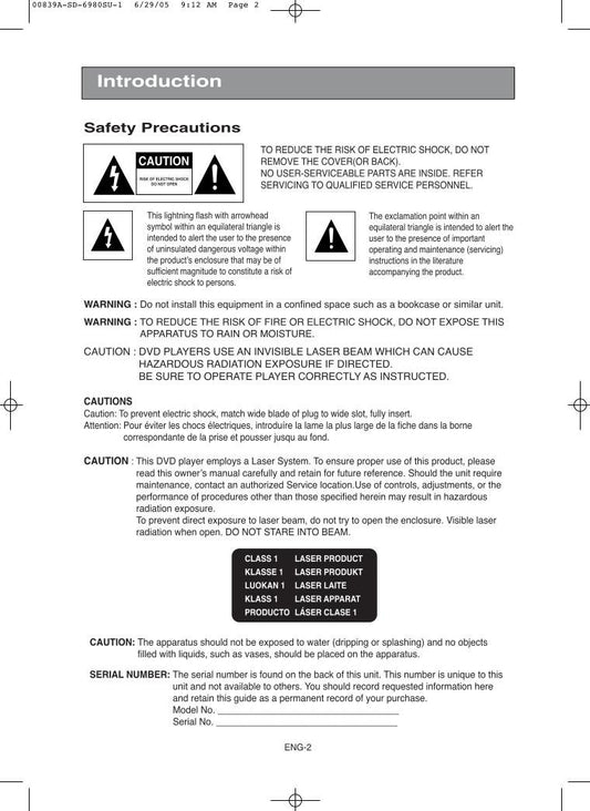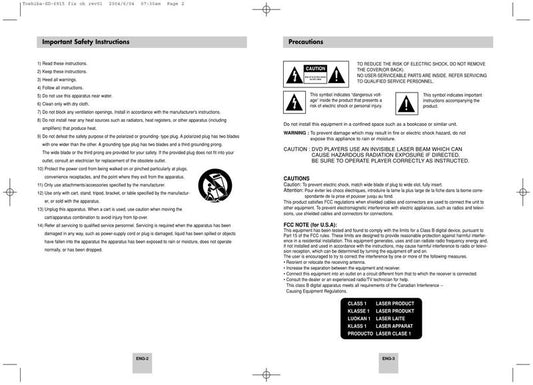 Toshiba SD6915 SD6915SU ser0126 DVD Player Operating Manual