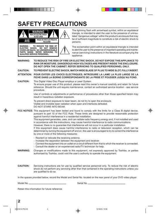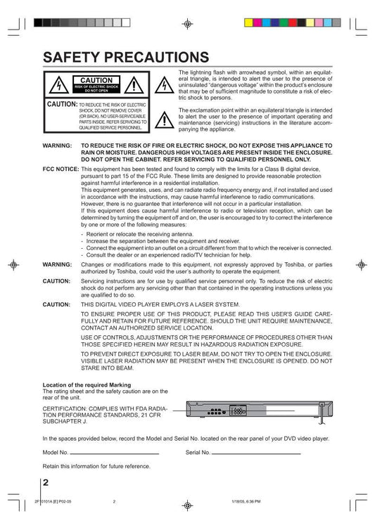 Toshiba SDK740 SDK740SU SER0121 DVD Player Operating Manual