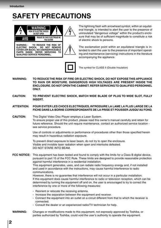 Toshiba SDK741 SDK741SC SDK741SU DVD Player Operating Manual