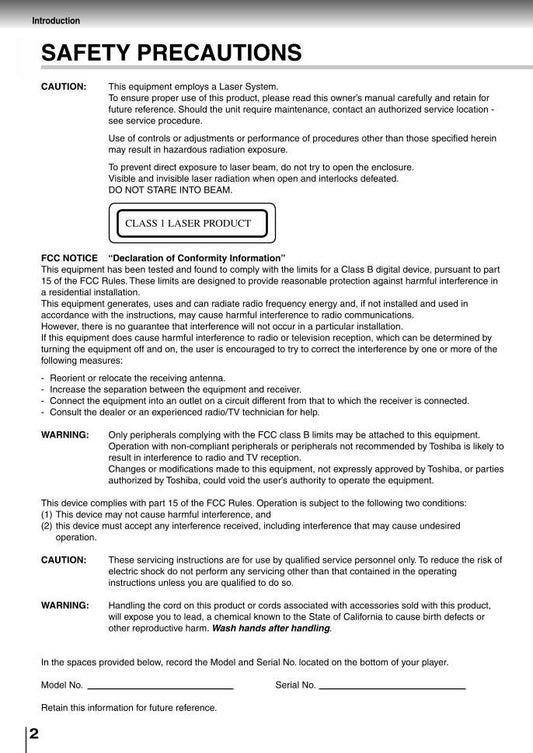 Toshiba SDP2700 Consumer Electronics Operating Manual