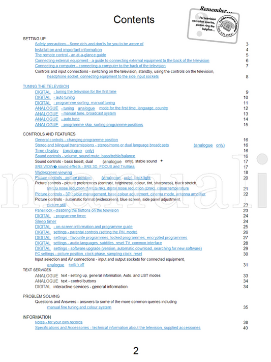 Toshiba WA3B63DG (35 pages) TV Operating Manual