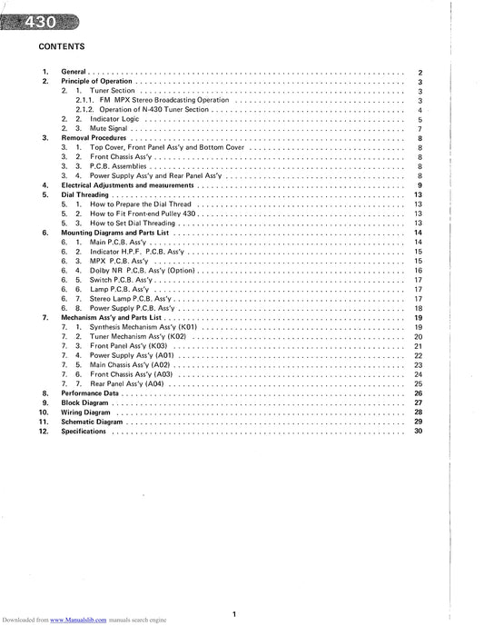 Nakamichi Model 430 FM Tuner Service Manual (Pages: 32)