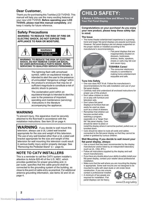 Toshiba 23HLV87 TV/DVD Combo Operating Manual