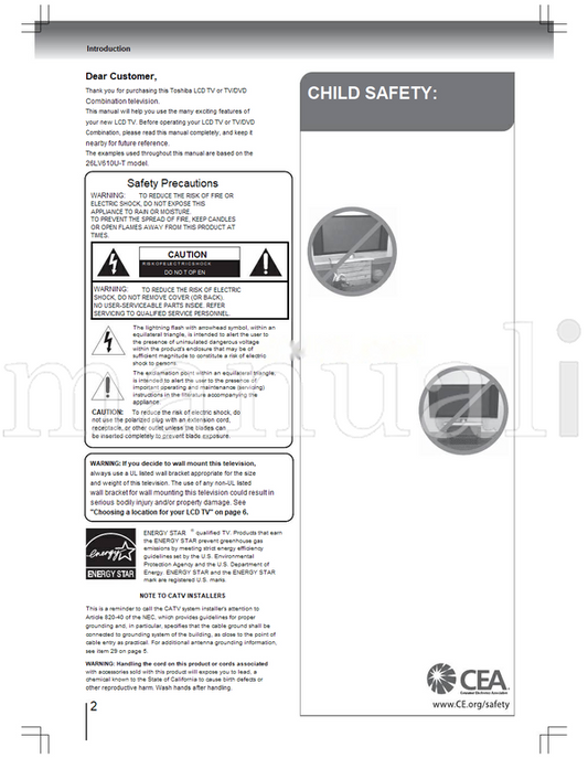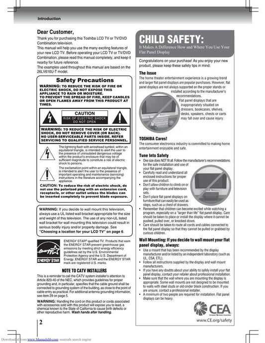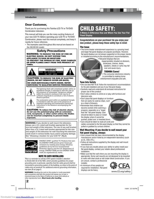 Toshiba 26CV100U TV/DVD Combo Operating Manual