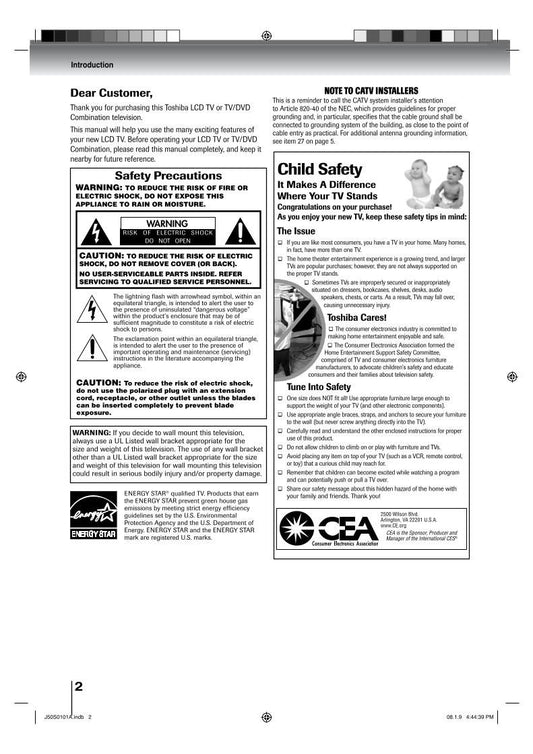 Toshiba 19LV505 19LV506 22LV505 TV/DVD Combo Operating Manual