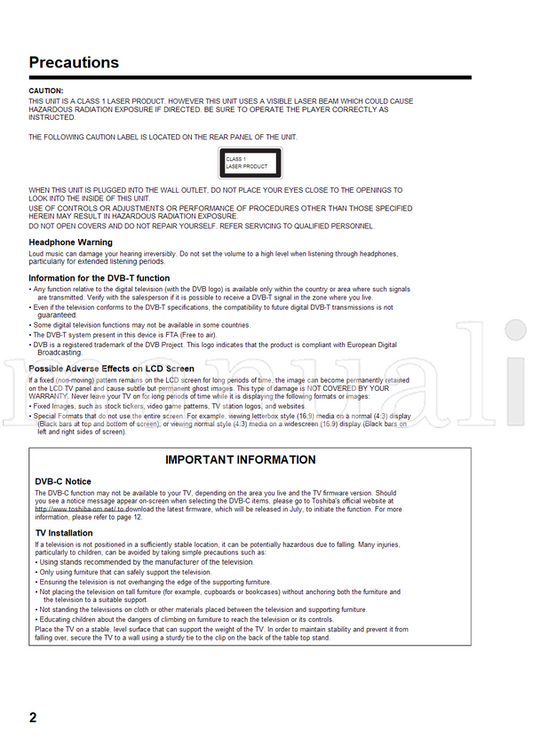 Toshiba 19LV610C 22LV610C 26LV610C 120235 (72 pages) TV/DVD Combo Operating Manual