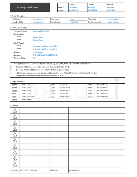LG 32LF6300-ZA 32LF6300 MFL68702216 (114 pages) TV Operating Manual