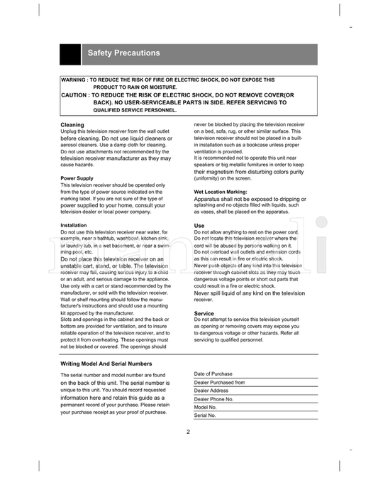 LG Color Television (24 pages) TV Operating Manual