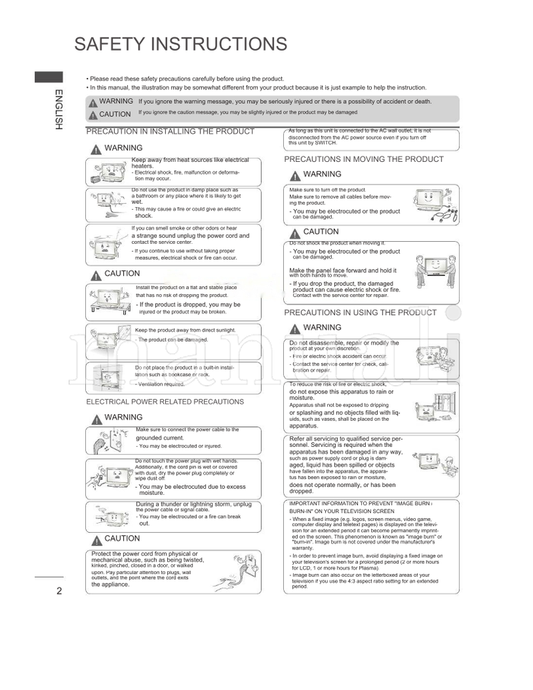 LG PLASMA (21 pages) TV Operating Manual