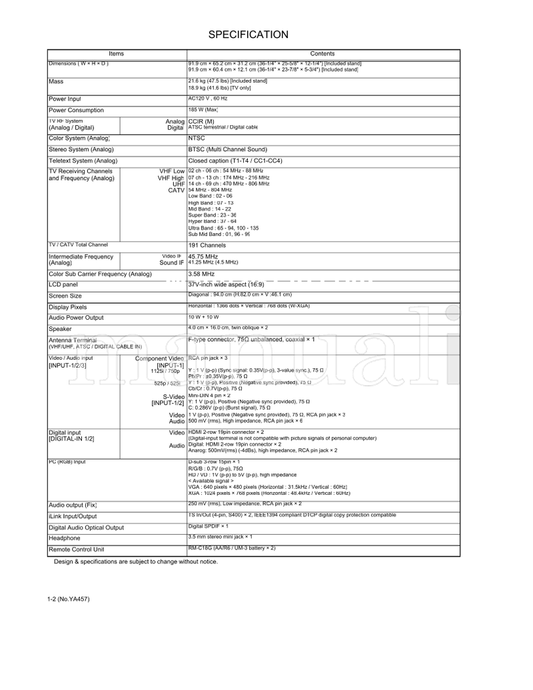 JVC YA457 LT-37X987 (207 pages) TV Service Manual