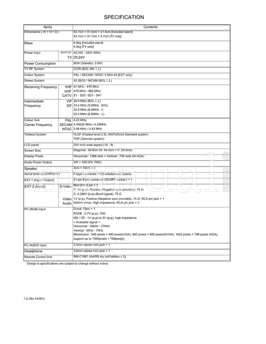 JVC YA369 LT-26A61BJ LT-26A61BU LT-26A61SJ LT-26A61SU LT-32A61BJ (20 pages) TV Service Manual