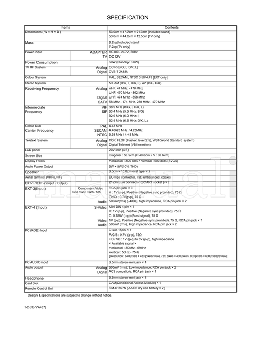 JVC YA437 LT-20DJ5SGE LT-20DJ5SFR LT-20DJ5SSP (51 pages) TV Service Manual