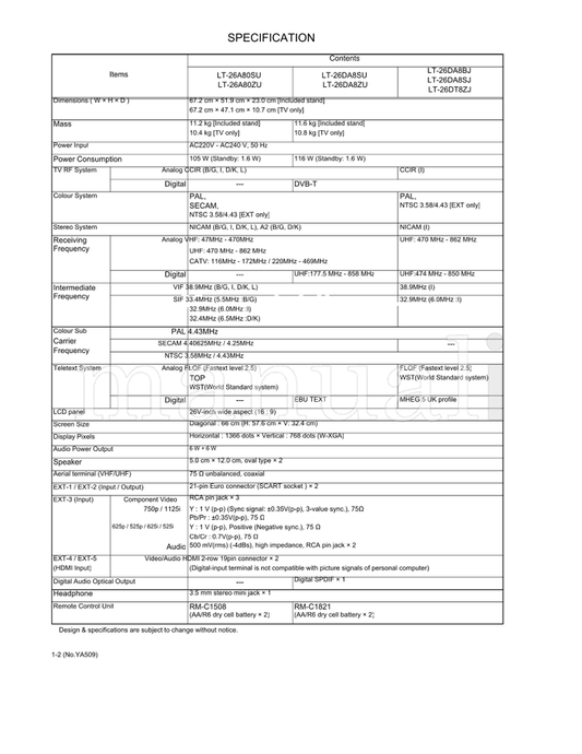 JVC YA509 LT-26A80SU LT-26A80ZU LT-26DA8BJ LT-26DA8SJ LT-26DA8SU (72 pages) TV Service Manual