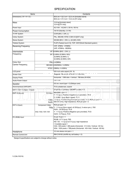 JVC YA314 LT-26A60BU LT-26A60SJ LT-26A60SU (20 pages) TV Service Manual