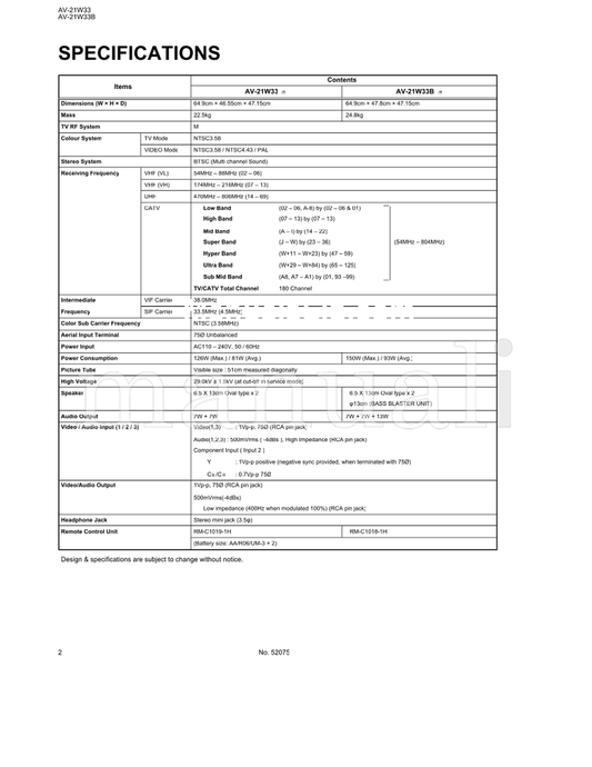 JVC RM-C1019 RM-C1019-1H AV-21W33 AV-21W33B RM-C1018 RM-C1018-1H (33 pages) TV Service Manual
