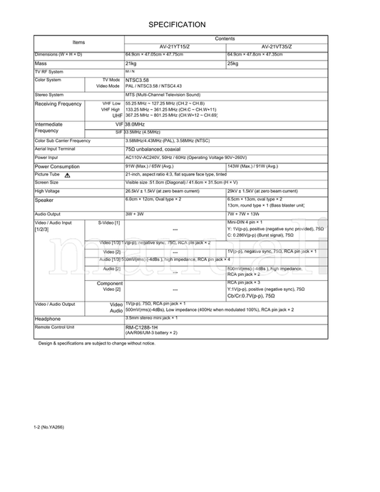 JVC YA266 AV-21YT15 AV-21VT35 (32 pages) TV Service Manual