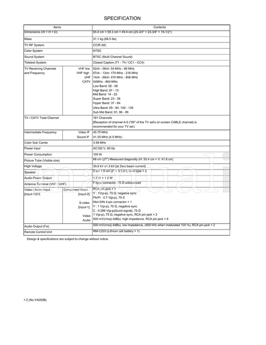 JVC YA050B AV-27530 (45 pages) TV Service Manual