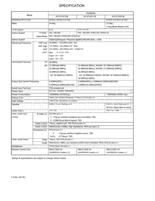 JVC RM-C1305 RM-C1305-1H RM-C1303-1H AV-21V311 AV-21V511 (92 pages) TV Service Manual