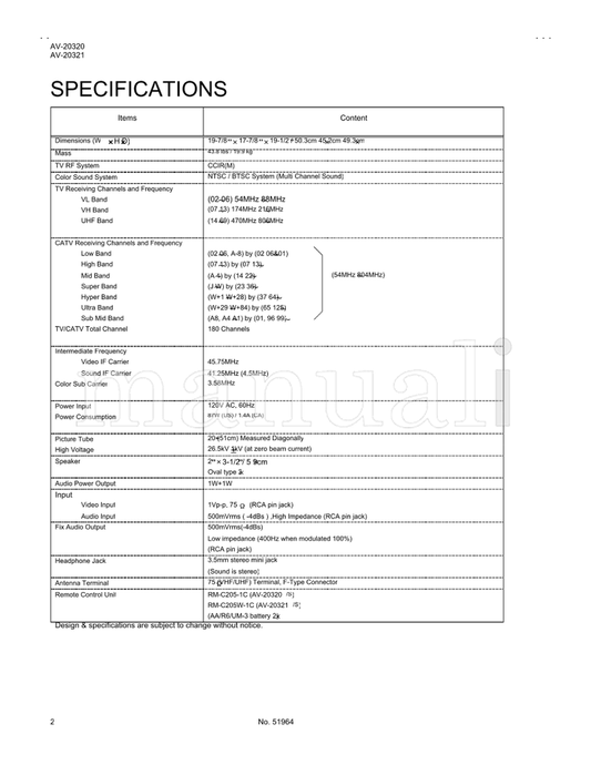 JVC AV-20320 AV-20321 51964 (42 pages) TV Service Manual