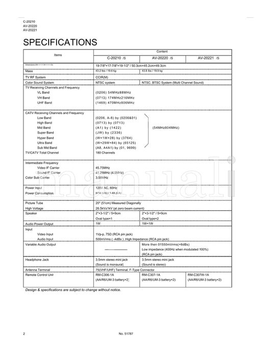 JVC C-20210 AV-20220 AV-20221 51787 (54 pages) TV Service Manual