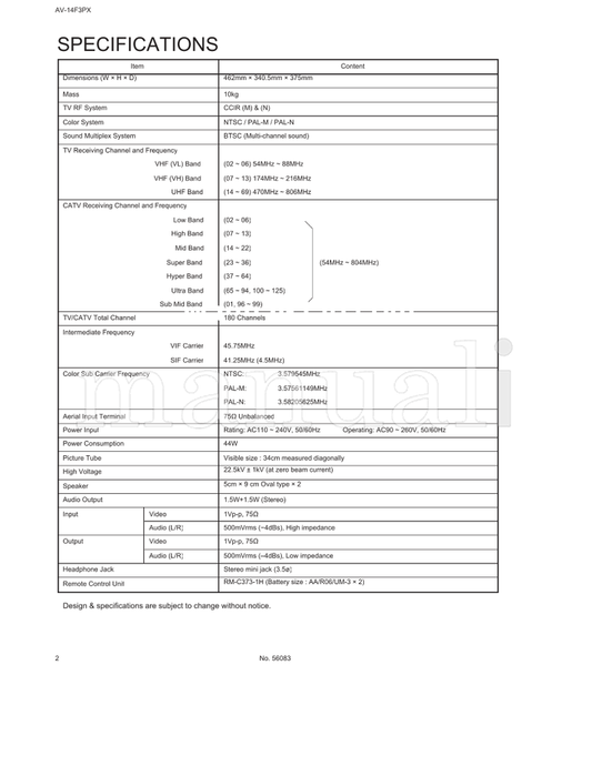 JVC AV-14F3PX 56083 (27 pages) TV Service Manual