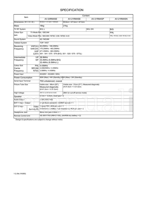 JVC YA080 AV-20RM4SE AV-21RM4SE AV-21RM4SN AV-21RM4SP RM-C1100 (51 pages) TV Service Manual
