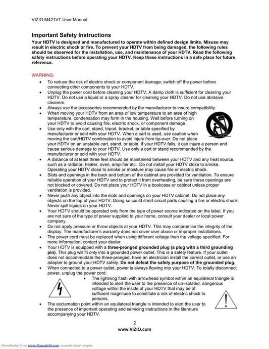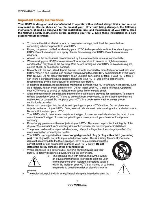 Vizio M421VT TV Operating Manual