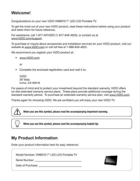 Vizio VMB070 TV Operating Manual