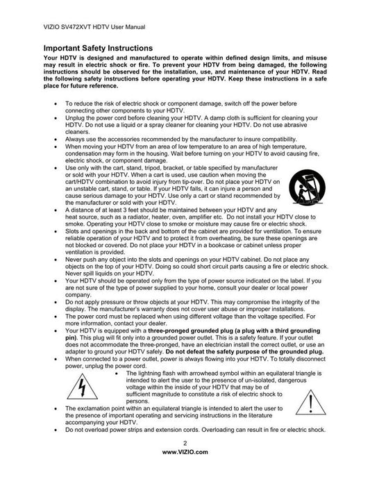 Vizio SV472XVT TV Operating Manual