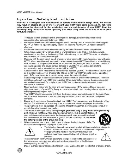 Vizio VA320MOM TV Operating Manual