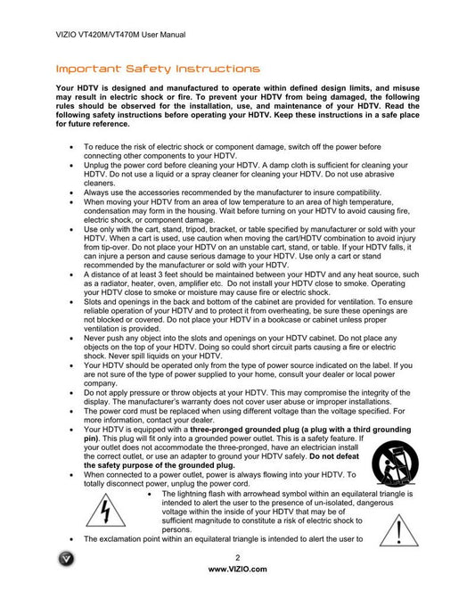 Vizio VT420M VT470M TV Operating Manual