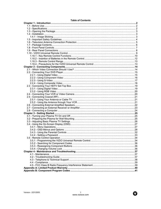 Vizio P42HDTV10A TV Operating Manual