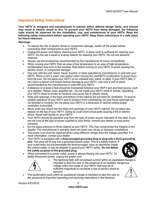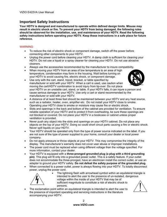 Vizio E371VA E421VA E470VA TV Operating Manual