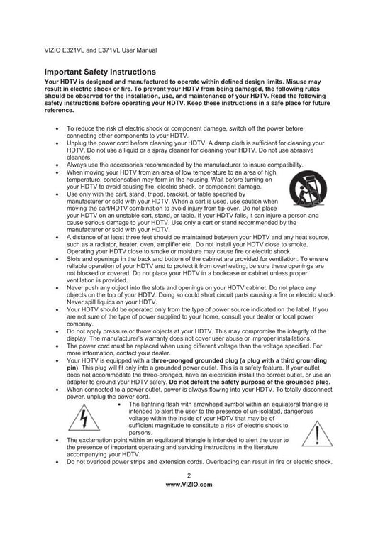 Vizio E371VL E421VL E470VL TV Operating Manual